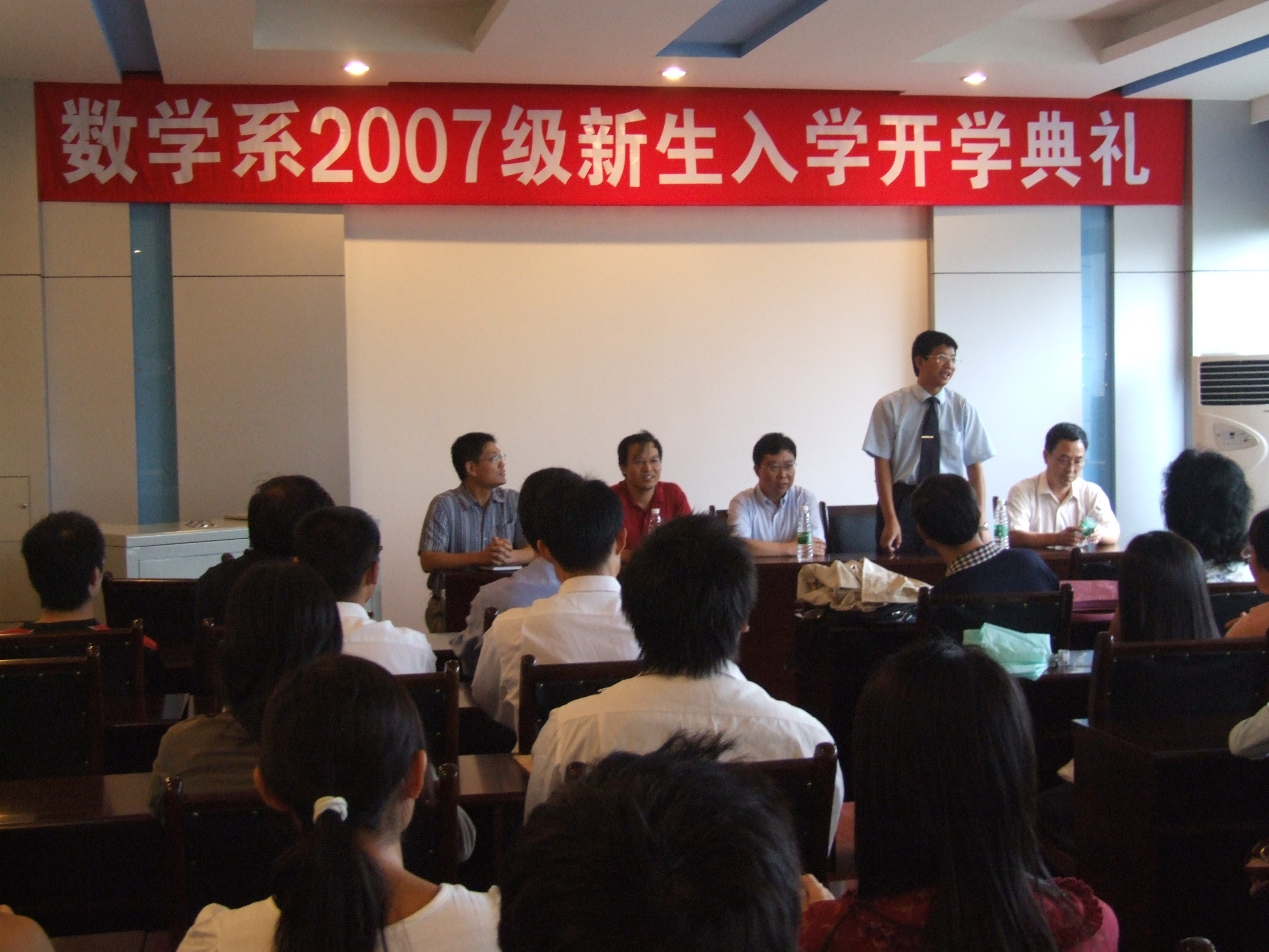 2007年9月7日下午2点30分,数学系2007级研究生入学典礼在2138cc太阳集团九里校区数学系会议室隆重举行,数学系主任何平老师、党总支书记陈尚云老师、副主任陈滋利老师、叶建军老师及党总支副书记李志辉老师,参加了本次新生入学典礼,与此同时还有本系研究生诸多导师列席参加。