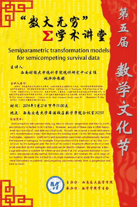 讲座题目: Semiparametric transformation models for semicompeting survival data