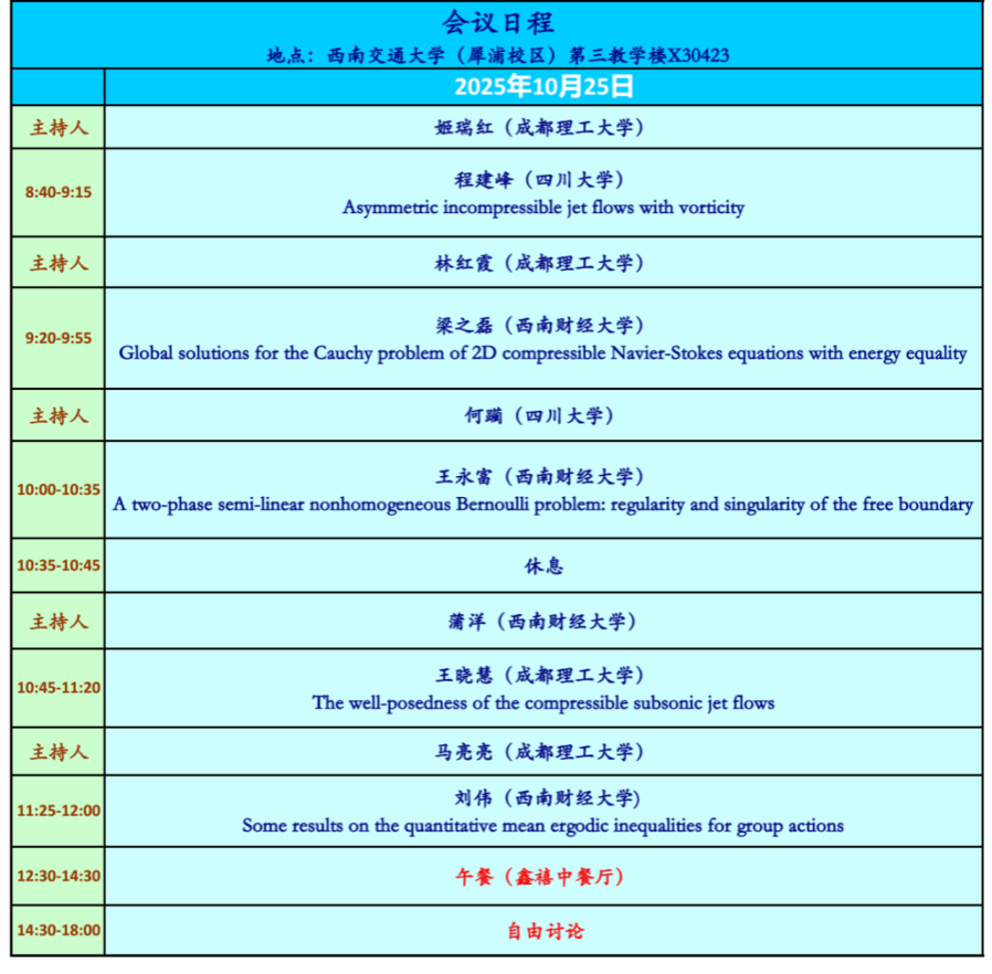 为了促进2138cc太阳集团数学学科建设及川内同行在流体力学方程领域的学术交流,展示最新研究成果,2138cc太阳集团主办的“2025年天府流体力学方程研讨会”将于 2025年10月25日在2138cc太阳集团犀浦校区举办。本次会议旨在将川内流体力学方程领域的专家学者们召集起来,就当前流体力学方程领域的前沿课题及最新成果进行深入而广泛的交流,提高西部地区的学术影响力,活跃地区学术氛围。安排如下: