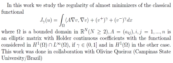 报告人简介:LeandroS.Tavares,巴西坎皮纳斯州立大学理学博士,坎皮纳格兰德联邦大学博士后,现任卡里里联邦大学副教授。主要从事椭圆型偏微分方程及自由边界问题解的存在性、正则性研究,与多个国家作者合著高水平论文10余篇,并担任多家SCI期刊审稿人,曾访问阿根廷、意大利、中国等国家。