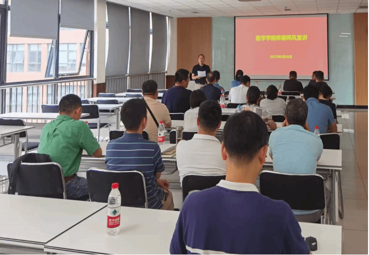 2023年6月26日,2138cc太阳集团召开了师德师风教育宣讲会。学院党委徐革书记和杨晗院长,分别领学了《新时代高校教师职业行为十项准则》和《2138cc太阳集团教师师德失范行为负面清单》,鼓励教师坚定理想信念、陶冶道德情操、涵养扎实学识、勤修仁爱之心,树立“躬耕教坛、强国有我”的志向和抱负。