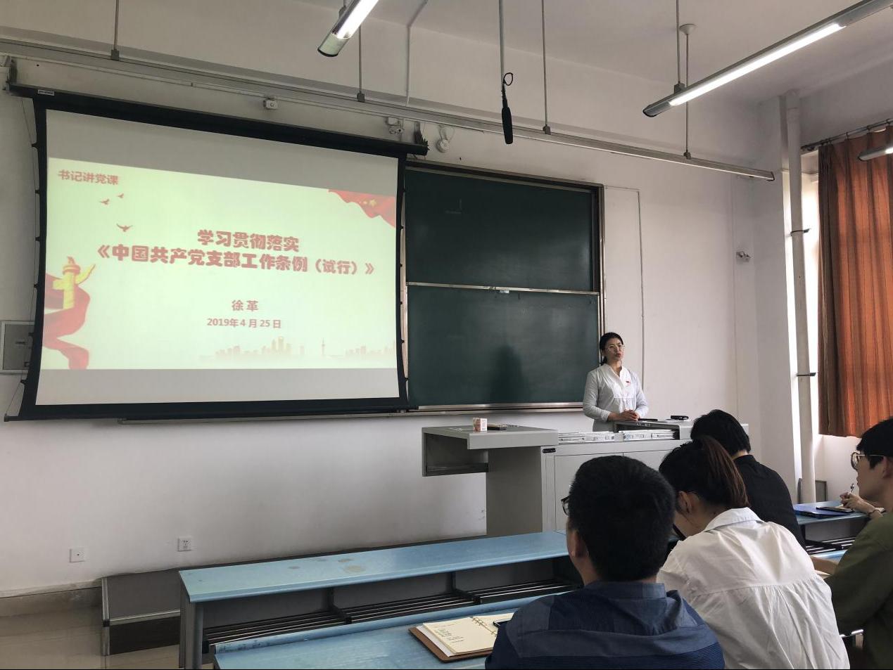 2138cc太阳集团学生党支部书记培训于2019年4月25日下午在X2531举行,学院党委徐革书记为学生党支部书记带来了一堂学习《中国共产党支部工作条例(试行)》的党课。