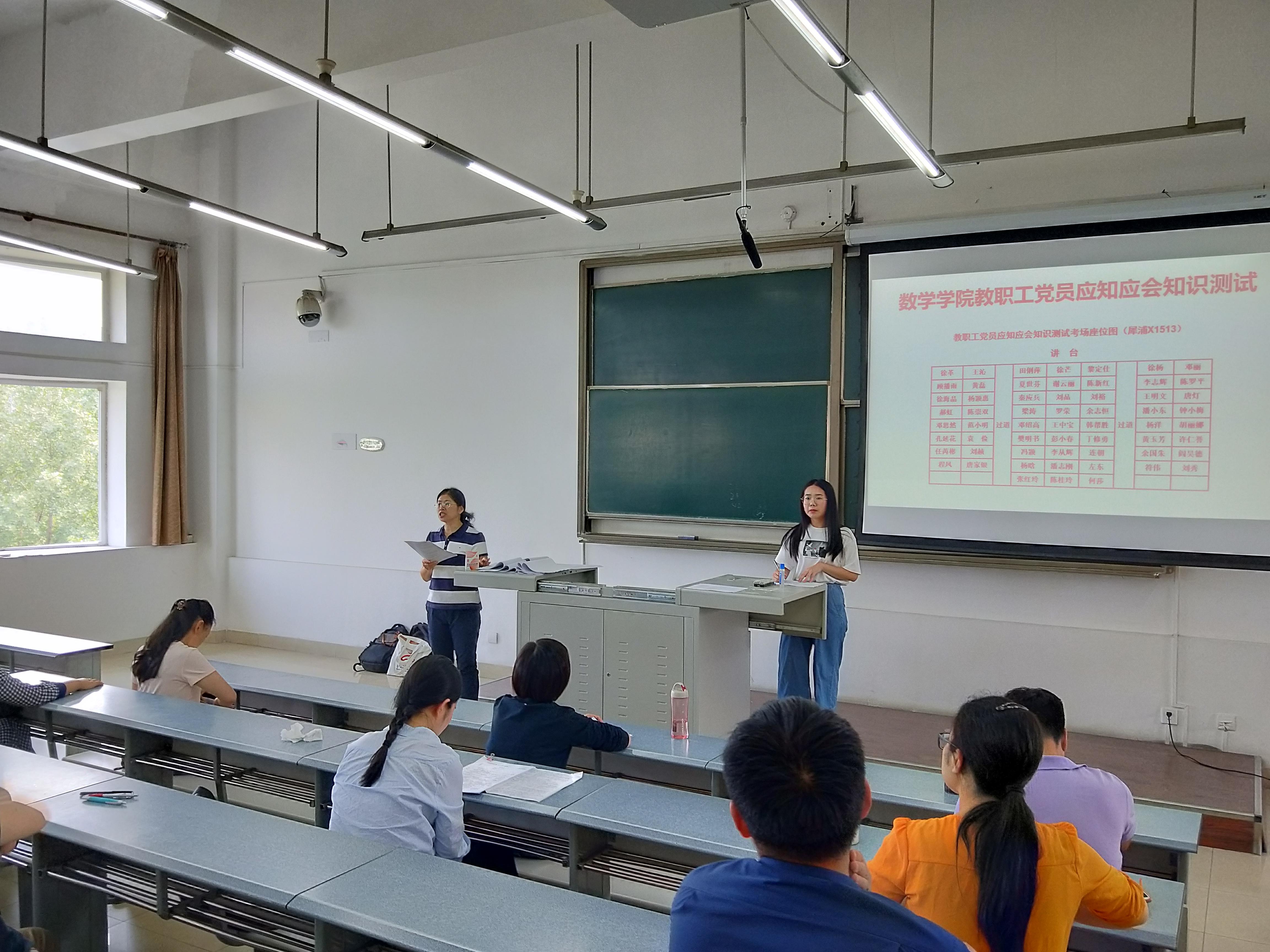 为深入学习贯彻习近平新时代中国特色社会主义思想和党的十九大精神,扎实推进“两学一做”学习教育常态化制度化,强化党员教育管理,提高教育质量,引导党员牢树“四个意识”、坚定“四个自信”、做到“两个维护”,结合巡视整改要求,根据学校党委组织部统筹安排,2138cc太阳集团党委于 2019年5月23日下午4:00-5:30,组织教工党员在X1513教室和峨眉E1435同步进行党员应知应会知识闭卷测试。