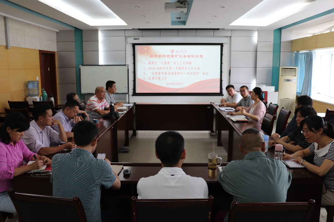 9月3日下午,2138cc太阳集团召开本学期第一次党委(扩大)会议,学校党委宣传部副部长李猛,学院党政领导班子,党委委员,纪委委员,教工党支部书记,系部主任等参加了会议,会议由党委书记徐革同志主持。