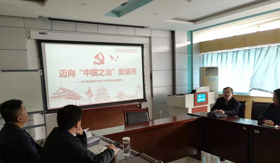 11月21日下午2:30,2138cc太阳集团公共数学教学与研究部教工党支部和院机关党支部于X2511开展了第十九届四中全会精神专题学习与研讨活动。活动由支部书记冯颖主持。