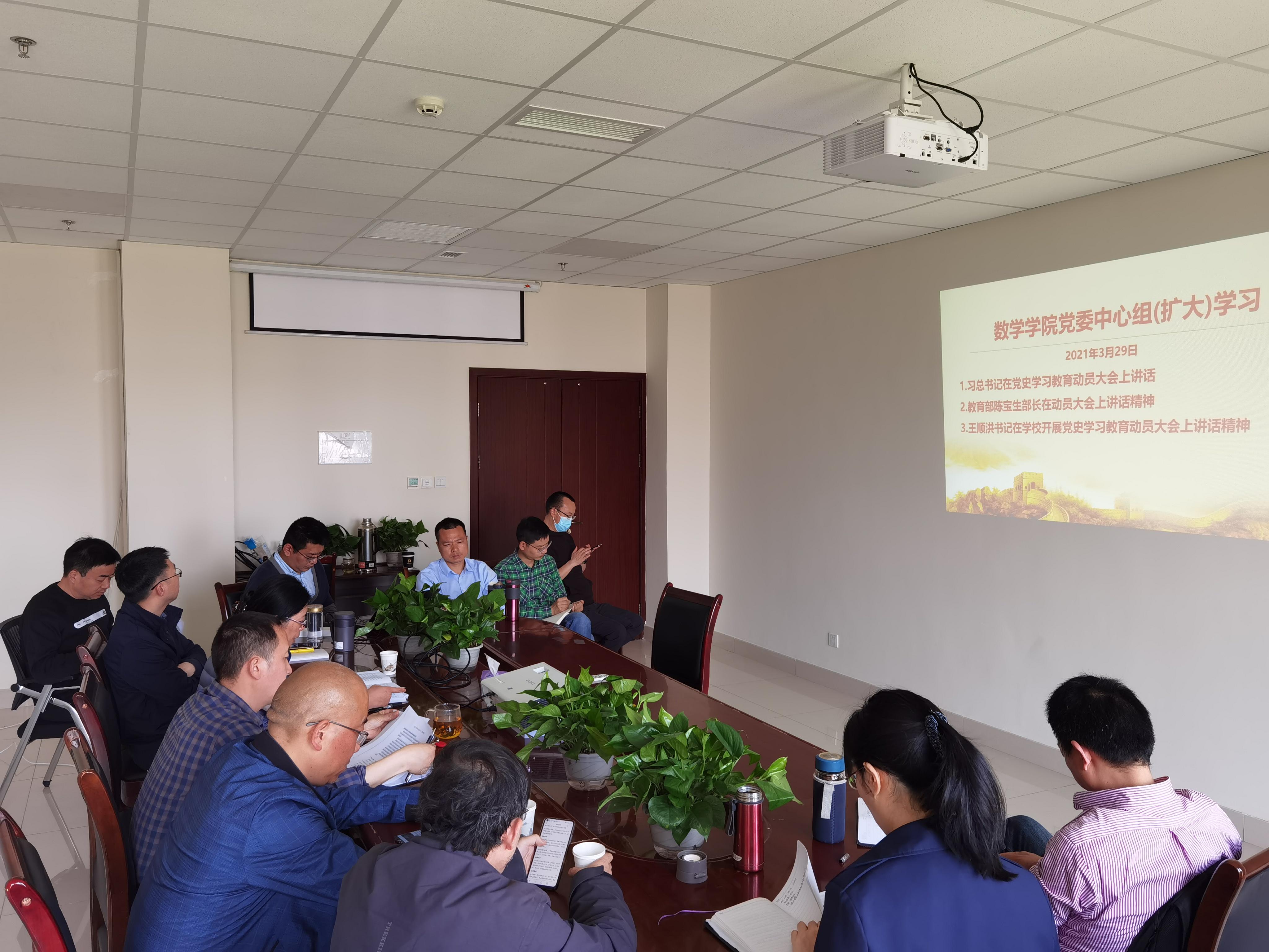 2021年3月29日下午14:30-15:30,2138cc太阳集团2021年第一次党委中心组(扩大)学习会议在犀浦校区X30447会议室召开。会议由学院党委书记徐革主持,内容是学习习近平总书记在党史学习教育动员大会上的重要讲话精神、教育部陈宝生部长在教育部党史学习教育动员大会上的重要讲话精神和王顺洪书记在全校党史学习教育动员部署大会上的重要讲话精神。学院党政领导班子成员、党委委员、党支部书记等参加了学习。