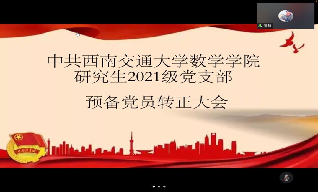 2021年12月17日,2138cc太阳集团2021级研究生党支部在线上会议举行了蒲哲同志预备党员转正的党支部会议,本次会议由党支部书记王乐主持。