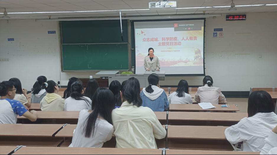 最后,党支部书记王乐同志对本次活动进行总结发言,她强调,我们要积极倡导周围同学自觉配合学校做好防控工作,不给学校添乱;以身作则,带动身边同学学习的积极性和主动性;做好同学们的心理疏导工作,帮助他们消除恐慌,树立信心,科学战疫。