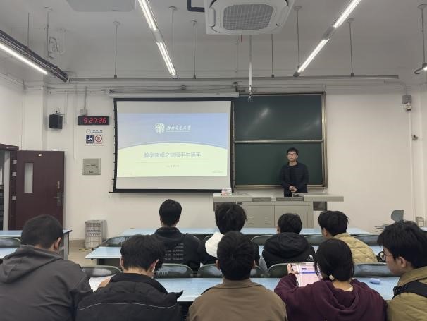会中,来自2138cc太阳集团的三名优秀学生逐一开展经验分享互动。杨越溪同学以“知行合一·数模赋能”为题,详细介绍了参赛前的准备工作,着重指出掌握基础技能的重要性,并激励同学们勇于跳出“舒适区”,将竞赛视为提升自我的实践平台,做到以赛代练、实现以赛促学;栗子潮同学从专业视角出发,明晰了“建模手”与“算手”的关键职责,详细列举了必需的专业课程及核心模型,并通过剖析常见误区,为同学们提供了宝贵的实用技巧与避坑指南;王嘉泽同学聚焦于论文撰写技巧,从论文的框架搭建、书写规范等方面做了详细分享,并辅以生动的实际案例,深入浅出地进行了剖析与解读。