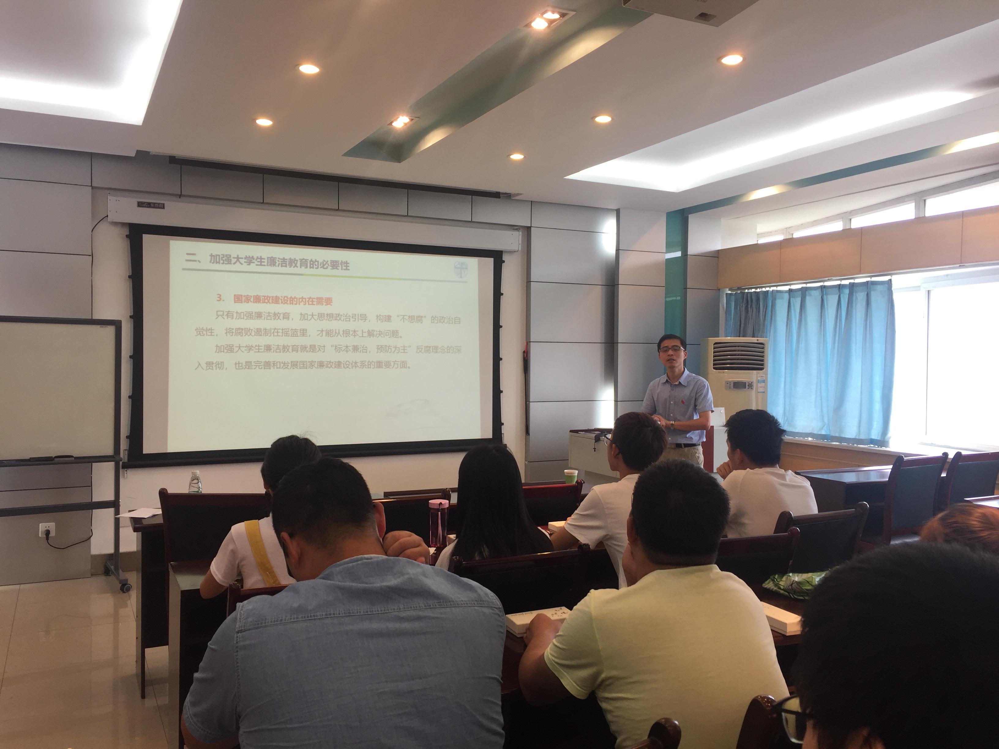 6月19日下午16:00,大学最后一课毕业班党员学习廉洁会议在X2511顺利召开,会议由2138cc太阳集团党委副书记兼纪委书记杨育鸿老师主讲,学生党建指导老师卢怡帆老师主持,本研全体毕业生党员参加了此次会议。