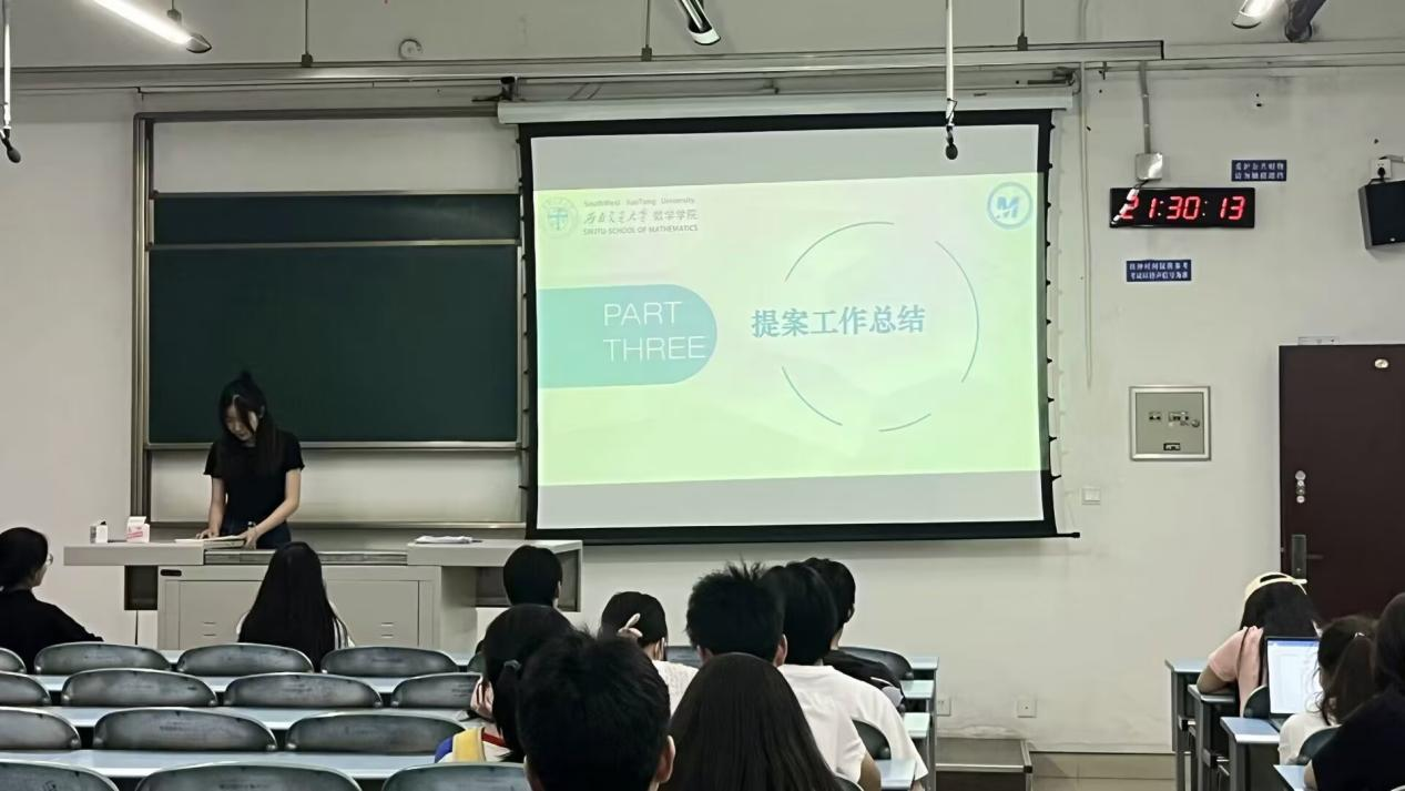 会议第一项,由2138cc太阳集团学生会权益发展部部长马晓菁对各班的提案做了概述和回复。