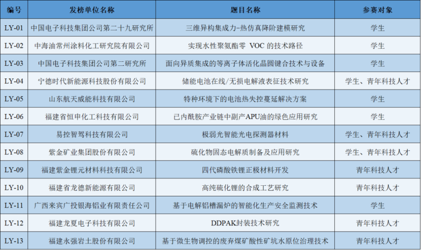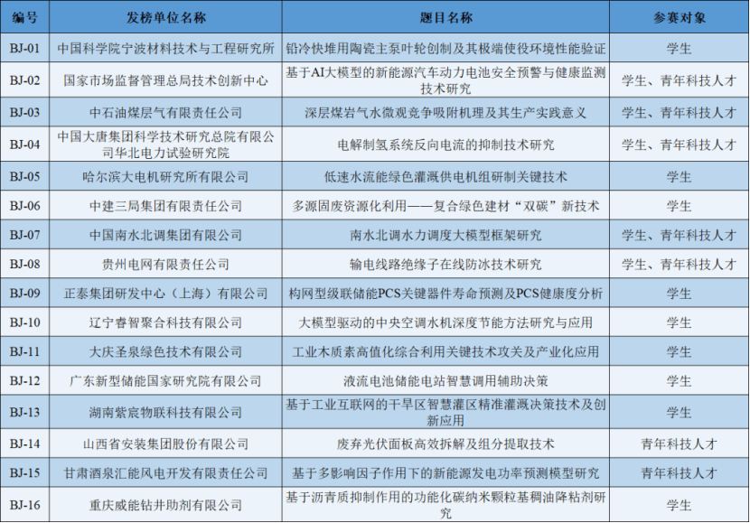 为深入学习贯彻习近平新时代中国特色社会主义思想,认真贯彻落实党的二十大和二十届二中、三中全会精神,深入贯彻落实习近平总书记关于科技创新的重要论述,教育引导广大青年面向国家重大战略需求,踊跃投身科研攻关一线,加速科技创新成果向现实生产力转化,奋力书写为中国式现代化挺膺担当的青春篇章,特举办第十九届“挑战杯”竞赛2025年度中国青年科技创新“揭榜挂帅”擂台赛。相关事宜通知如下。