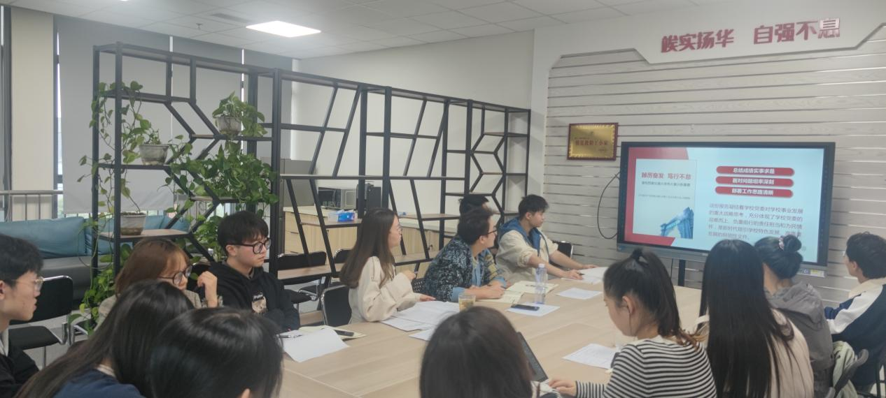 在学习后会议成员展开了热烈的研讨,团委副书记周义杰老师作为22级新生辅导员首先发言,他讲到,会及时响应院团委号召,积极组织学院新生班级、团支部广泛开展第十五次党代会精神的学习宣讲,提升宣讲的吸引力、感染力,带领同学们深刻领会和把握党代会精神实质,汇聚推动学校改革建设发展的磅礴力量。