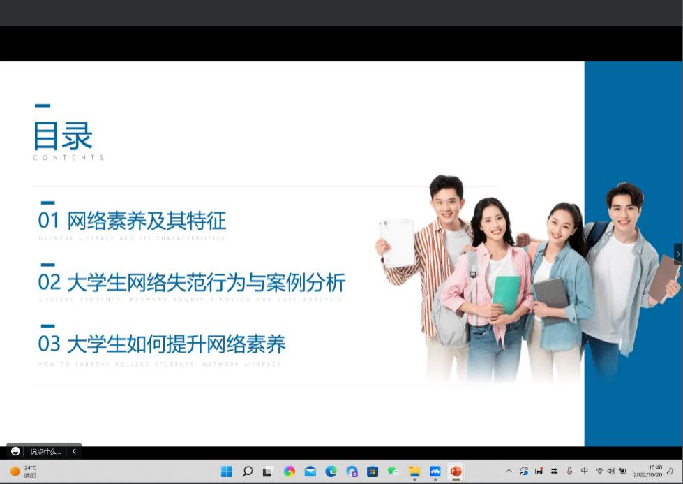 在实验室的安全教育之后,由2022级硕士班辅导员何鑫海为2022级新生开展提高网络素养的专题教育。