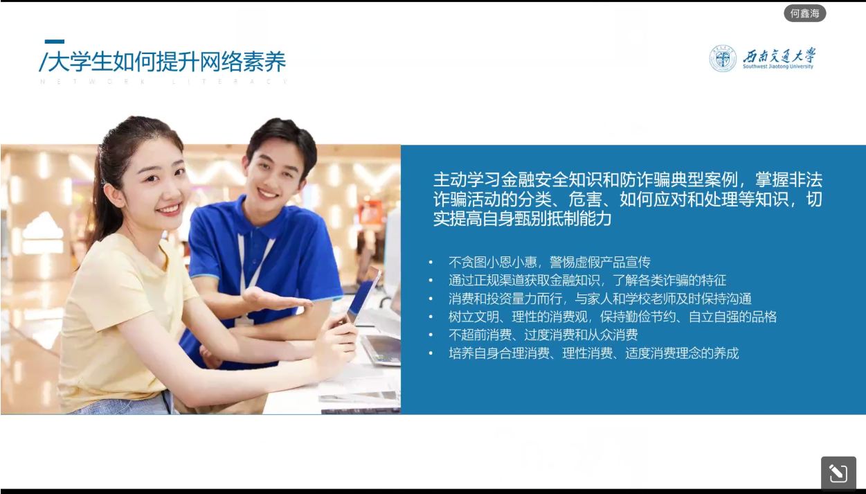 何鑫海列举了一系列大学生网络失范行为和案例,并进行分析以加深同学们对网络素养的理解。