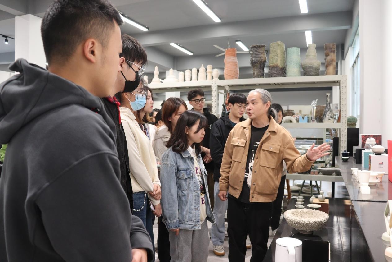 随后,陶瓷艺术与制作工艺实验室主任王永亮老师以风趣幽默地方式从实验室基本情况、陶瓷艺术的发展、陶瓷制作的工艺流程等方面向大家进行了耐心地讲解,特别展示了实验室打造的熊猫飘逸杯、变脸盖碗以及我校125周年文创作品的设计理念及创作来源。讲解完毕后,王老师为大家提供了关于陶绘的工具材料,在讲解完绘画流程和操作的注意事项之后。师生们开启了一次围绕“爱国、爱党、爱校”为主题的陶画创作。