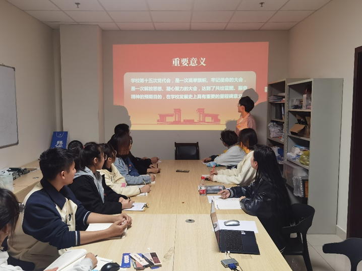 专题学习第四项,由同学们结合自身工作进行讨论发言。作为学生干部应该主动学习十五次党代会精神,并带领身边的同学一起学习,一起实践。将思路融入工作,提升自身思想觉悟与工作能力。