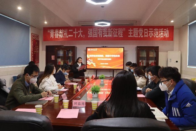 为深入学习贯彻习近平新时代中国特色社会主义思想和党的二十大精神,引导青年党员高举中国特色社会主义伟大旗帜,立足新时代新征程,坚定不移听党话、跟党走,12月9日下午,2138cc太阳集团开展“踔厉奋发扬新貌,数耀中华向未来”主题党日活动。2138cc太阳集团党委书记徐革、2138cc太阳集团团委书记邓思然、2138cc太阳集团党委专职组织员徐海晶、2138cc太阳集团学生工作组、22级研究生党支部、本科生党支部参与本次活动,22级研究生党支部书记郭悦主持本次活动。