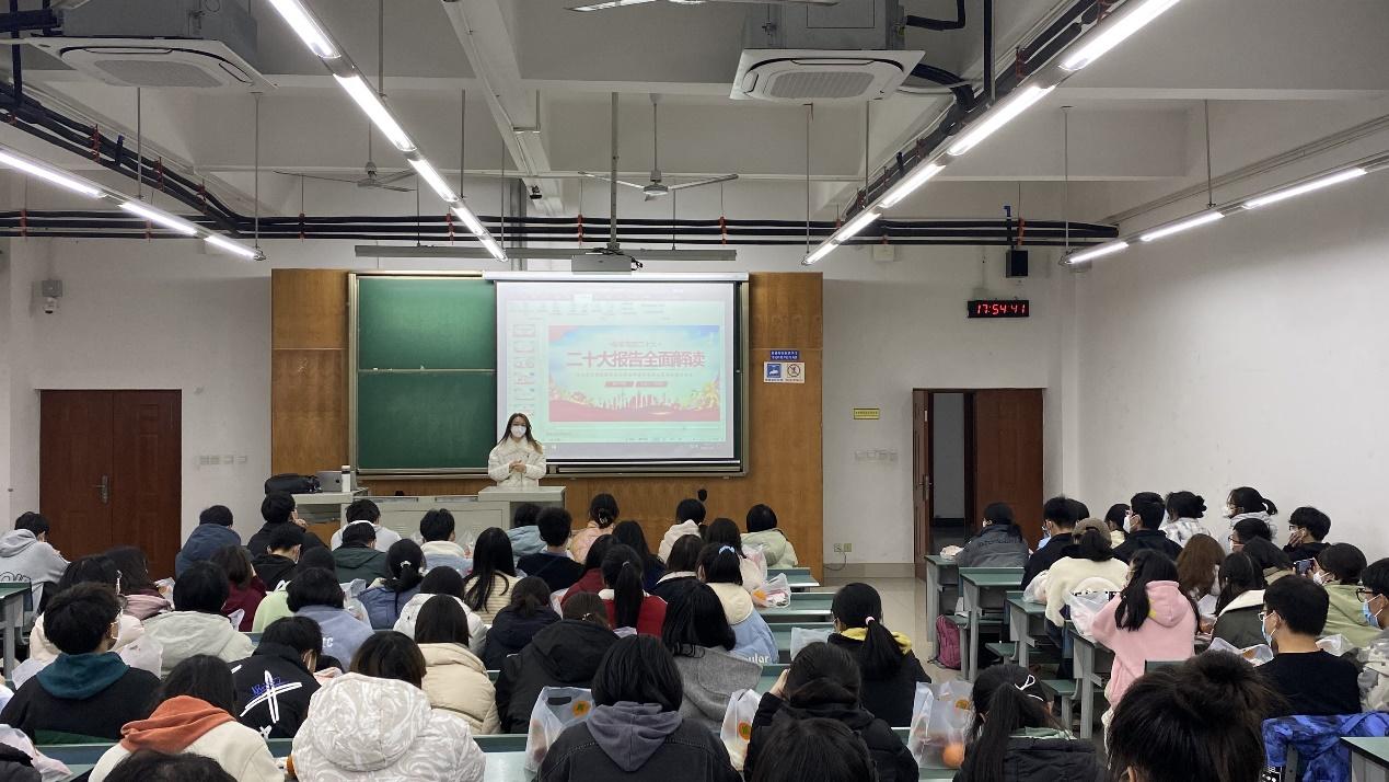 为深入学习宣传贯彻党的二十大精神,进一步加强团员青年理论学习,12月9日下午,2138cc太阳集团团委于X4152教室举行学习党的二十大精神专题宣讲会。2138cc太阳集团团委书记邓思然以“二十大报告全面解读”为主题面向基层团员青年作宣讲报告。2138cc太阳集团团委副书记周义杰、团委副书记(学生兼职)赵汉林、2138cc太阳集团2022级全体本科生共170余人参加了本次宣讲学习。