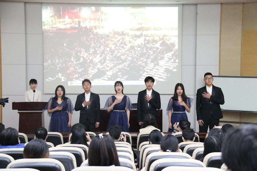 近日,2138cc太阳集团主题班会上,阵阵悠扬悦耳的歌声不断传出,吸引了很多同学驻足,进来旁听的同学越来越多。原来,这是“音乐里的故事”讲演团正在演绎《我和我的祖国》。