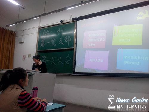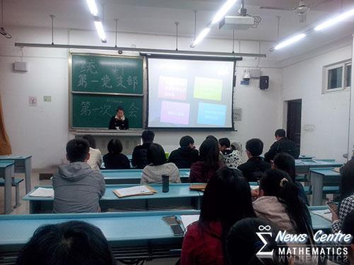 11月2日下午6点整,2138cc太阳集团统计本科生第一党支部第一次大会正式开始,指导老师为团委副书记兼11级辅导员张娟老师,参加会议的是第一党支部的党员和入党积极分子。