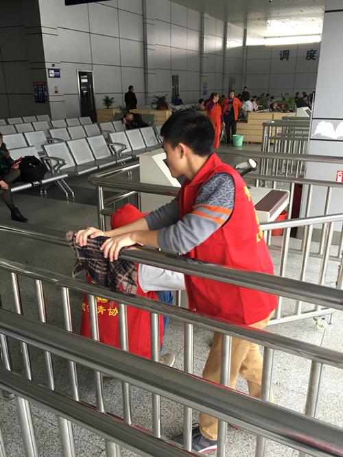 当然,青协的成员们不仅仅局限于为过往的人提供口头上的帮助,他们还去向了安检口,为那些因行李过重而前行缓慢的人贡献了自己微薄的力量。作为客运站里流动的工作者,哪里有需要就去向哪里,帮忙维持客运站内的整体秩序,保持站内环境的整洁。为了及时做好衔接工作,大家不停地在站内奔跑着。