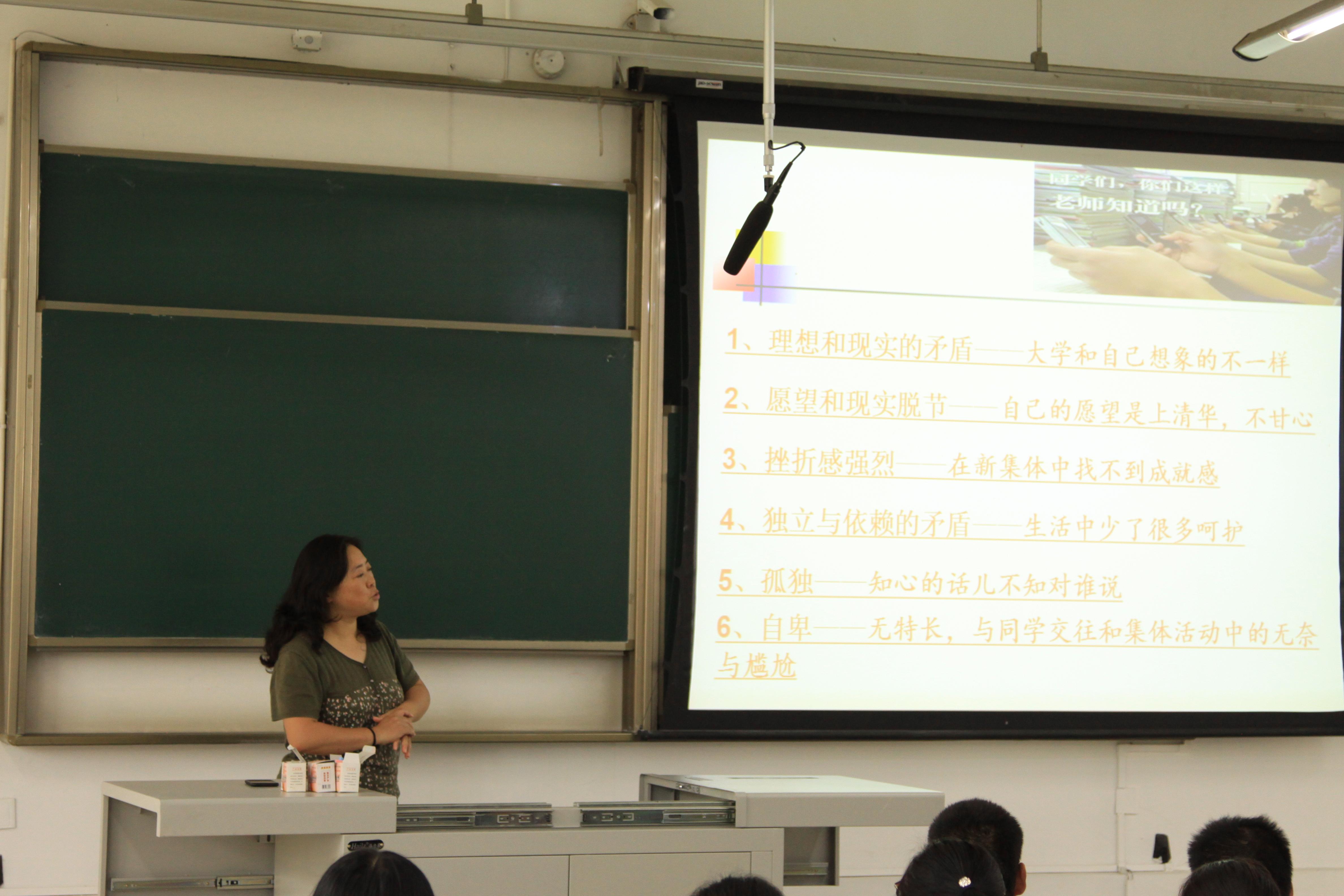 讲座一开始,张老师首先为同学们探讨了“为什么要上大学”,让同学们首先了解大学的含义。张老师告诫同学们大学要活在当下,充分感受大学的美好,千万不能虚度光阴,要学着去适应环境。接着,老师为同学们分析了大学刚入学时的一些心理状态,并详细为大家提出了实用而有效的建议。随后,谈到学习,张老师告诉同学们平时要自信,不要盲目攀比,这样不仅对学习有帮助,而且会使自身更有魅力;开始上课之后,不要因为课程困难就自暴自弃,一定要坚持下去,相信自己。
