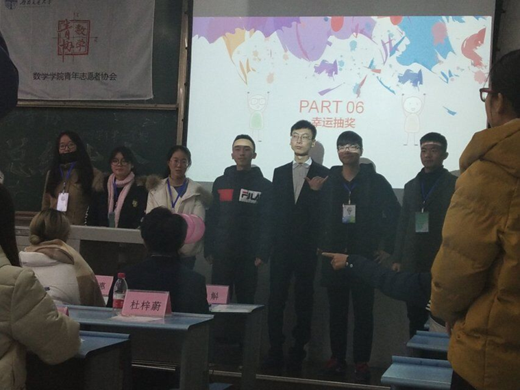 怀抱着细“数”记忆,展望未来的初衷,2138cc太阳集团青年志愿者协会的全体人员于2018年12月8号下午15点在2号教学楼X2425教室成功地举办了2018-2019年度第一学期的总结大会。数院青协指导老师谢童心、2138cc太阳集团团委副书记还鸿新、17届青协会长王汇川、18届青协会长张红佳,还有各兄弟学院青协会长作为嘉宾出席了本次总结大会。