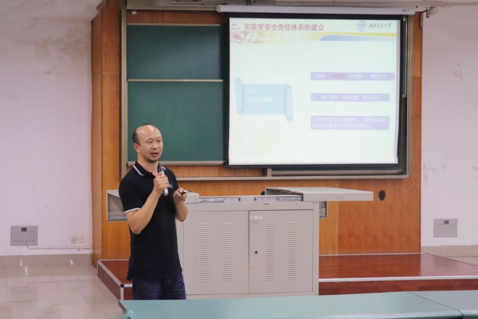 9月23日晚七点,2138cc太阳集团在X4350开展了2019级新生实验室安全教育活动。本次讲座由理学博士兼硕士生导师潘志刚主讲。