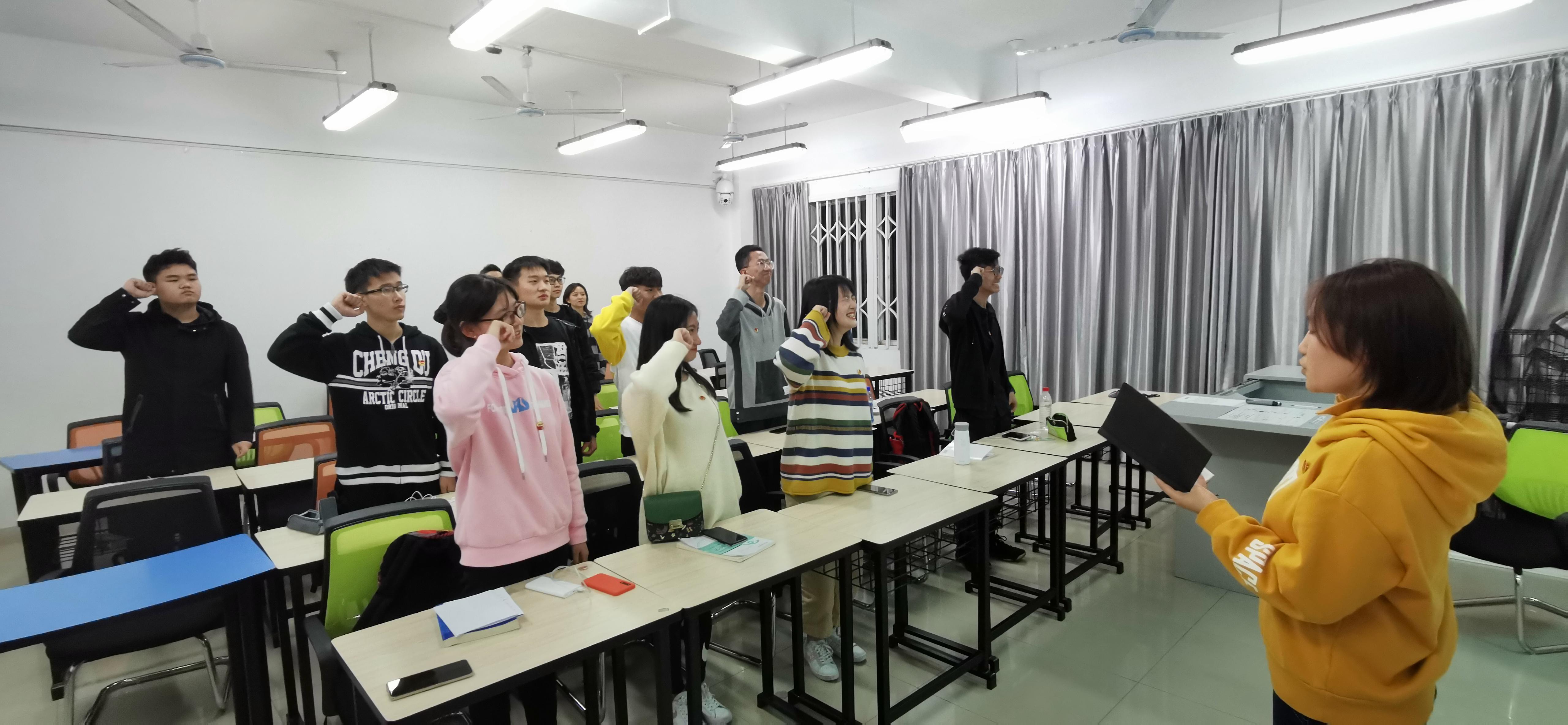 团课第二项,重温入团誓词。由副团支书带领大家再次喊出当初的誓言,一日为国之青年,便终生为国奋斗!