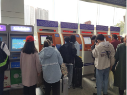自助机器引导组的志愿者们站立在自助售票机旁,帮助不熟悉自助售票机操作程序的乘客,或是操作不便的爷爷奶奶进行自助购票与自助取票。志愿者们耐心地询问乘客们的需求,熟练快捷地操作机器,有效地节省了乘客们的时间,提高了工作效率。