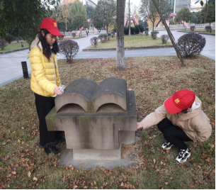 12月3日下午6点,2138cc太阳集团青年志愿者协会综合事务部的成员在“书”石碑和“启示”石碑集合,开展本学期最后一次雕塑清理活动。