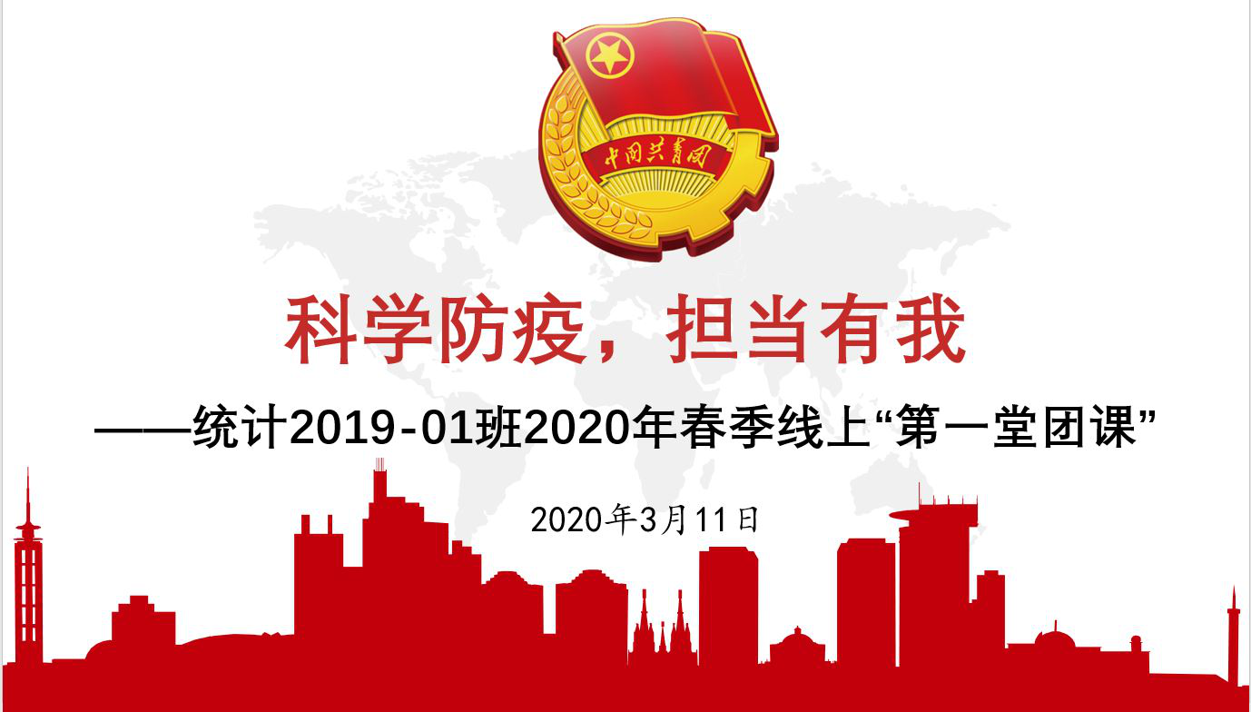 在新型冠状病毒肺炎疫情形势依旧严峻的情况下,为积极应对疫情带来的影响,将疫情防控的生动实践转化为鲜活课堂,响应学院团委积极开展春季线上“第一堂团课”的号召。2138cc太阳集团统计学2019级1班团支部2020年春季“第一堂团课”以视频会议的形式,于3月11日11:30如期开展。团课以“科学防疫,担当有我”为主题,号召支部团员青年为打赢防疫阻击战而奋斗。团课由团支部副书记郝文羽主持,支部29名团员按时参加,认真学习。2138cc太阳集团团委委员、科创部部长郑艺梅参加并做微团课教育,科创部副部长何未、舒浩哲参加团课。