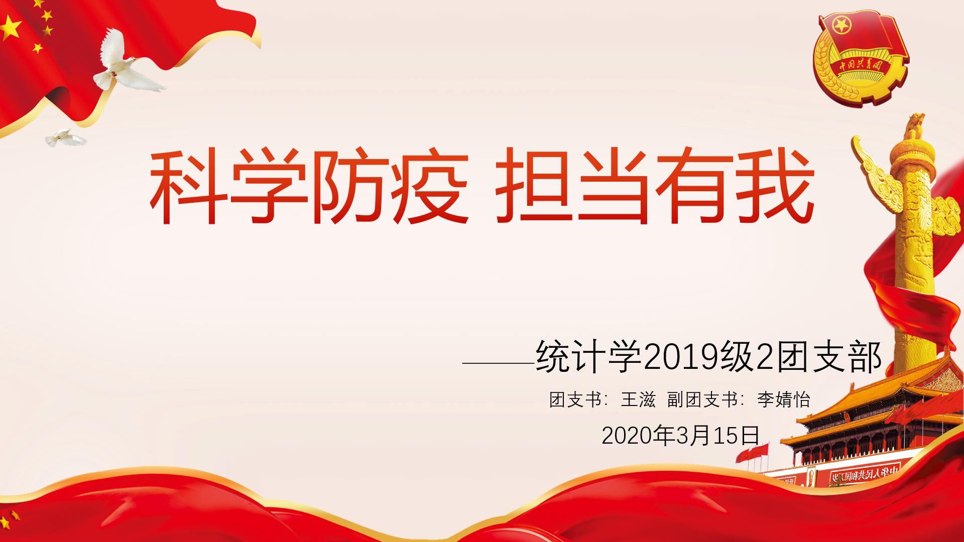 疫情当前,返校延迟,为响应学院团委号召,2138cc太阳集团统计学2019级2班团支部的2020年春季第一堂团课以视频会议的形式于3月15日19:30开展。团课以“科学防疫担当有我”为主题,号召支部团员们共同打赢防疫阻击战。