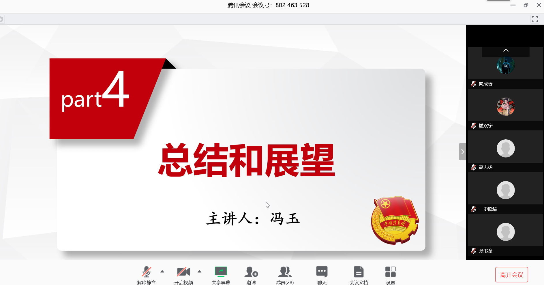 至此,本次线上团课学习结束。会议全程,大家认真聆听、积极互动,团课取得预期效果。