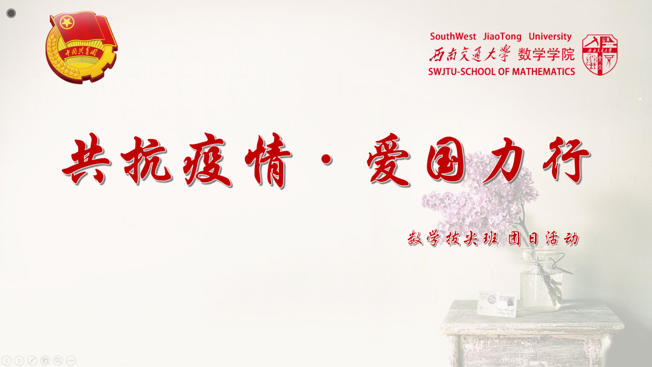为深入贯彻党的十九届历次全会精神,学习习近平总书记关于青年工作的重要思想及关于打赢疫情防控阻击战的重要指示精神,激发支部团员青年的责任与担当,积极响应学院团委号召,2138cc太阳集团应用数学2019级拔尖班团支部于4月28日下午两点半通过腾讯会议开展了以“共抗疫情·爱国力行”为主题的线上团日活动。本次团日活动由团支书宫天浩主持,支部全体团员参与。