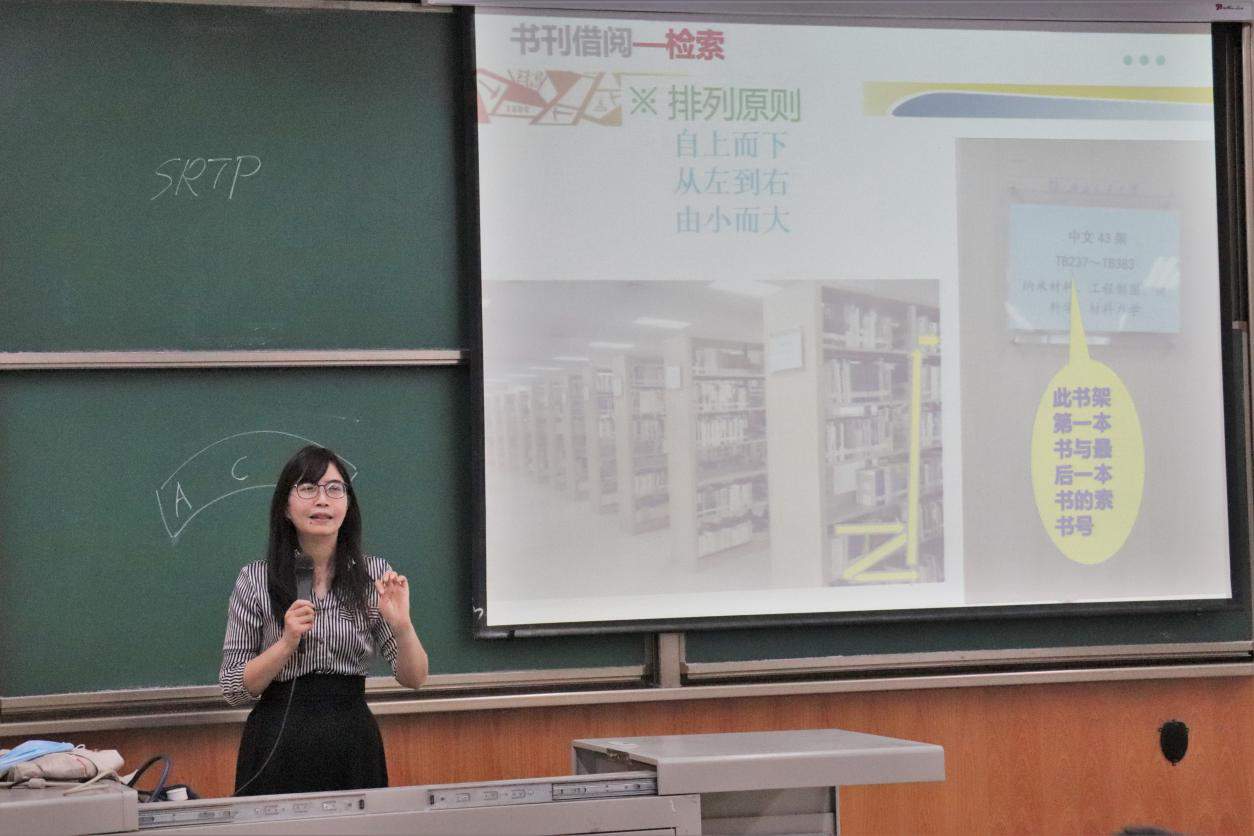 首先,陈老师以2016级“竢实扬华”奖章获得者姚铭同学的故事,引导同学们应当认识图书馆、爱上图书馆。她指出,新型高校图书馆不仅是学习中心,同样也是文化中心、交流中心和育人中心,具有着十分重要的作用。同时,陈老师也向同学们展示了图书馆举办的丰富多彩的活动、介绍了图书馆的学生组织与社团。她总结到,图书馆是全校师生最大的、最普惠的公共福利,只要想享受就绝对可以拥有,因此同学们应当多多认识图书馆。