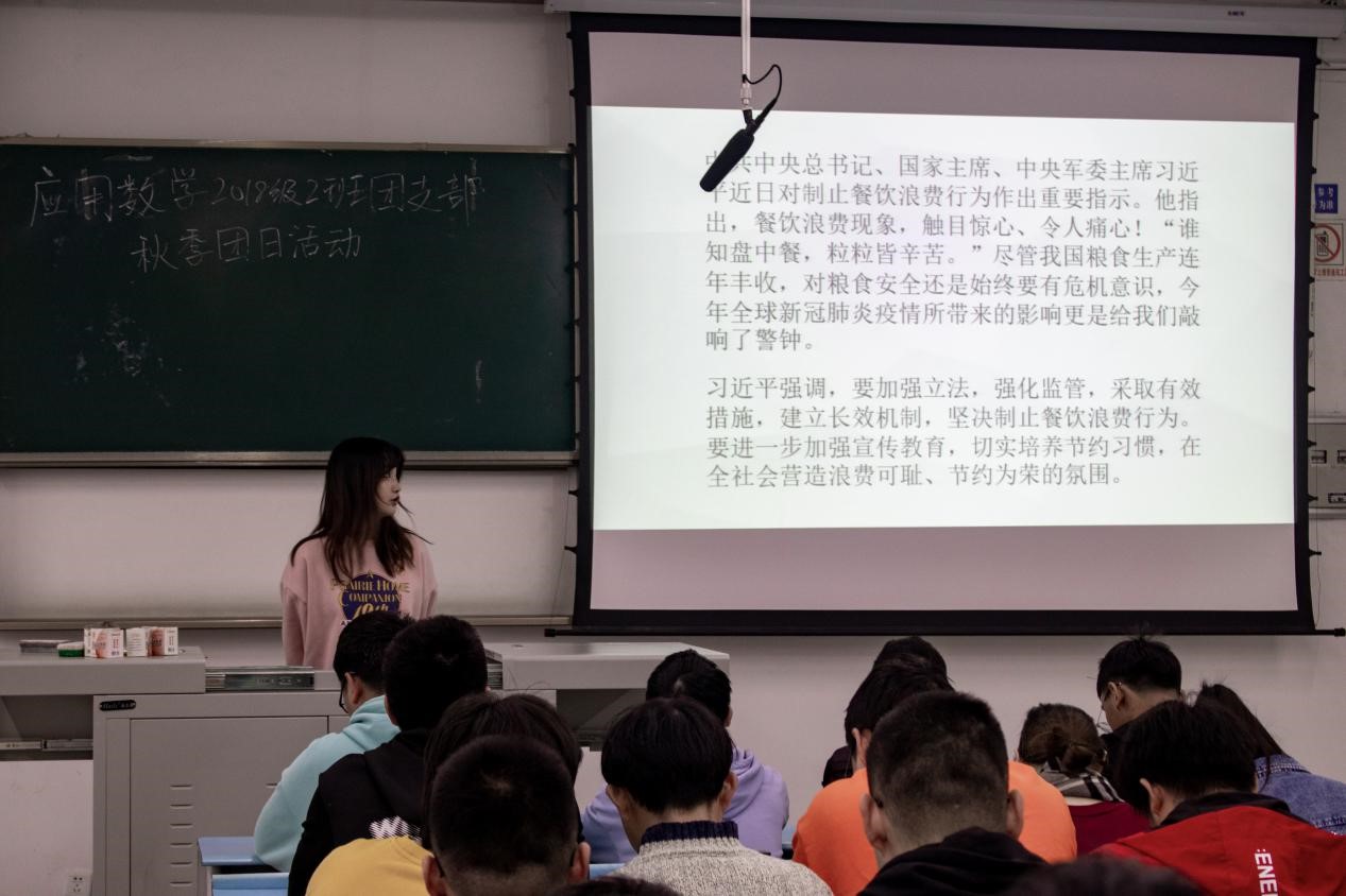 为弘扬中华民族勤俭节约的优良传统,进一步形成厉行节俭、拒绝浪费的良好习惯,2138cc太阳集团应用数学2018级2班团支部于2020年10月24日下午5:00于X2532开展了以“厉行节约,反对浪费”为主题的团日活动。参加此次活动的有数学二班团支部所有团员和2138cc太阳集团“1+100”团干部直接联系青年制度联系人林玉。