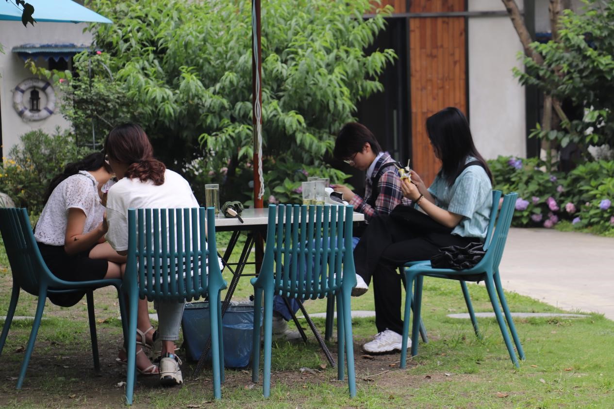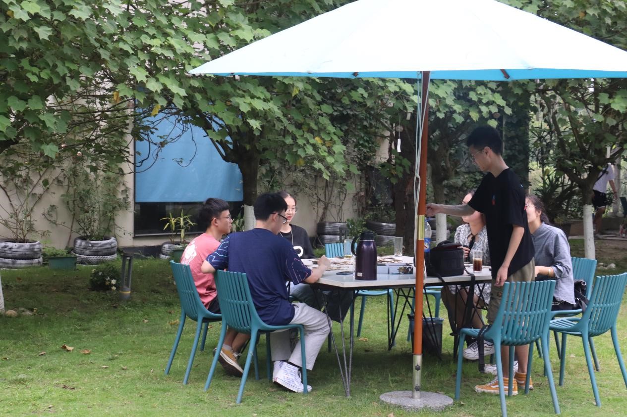 早10点,全班同学于图书馆门前集合完毕并合影留念。随后,班级一行人前往东门外“隐约·小小的岛”进行自主活动。同学们沿着绿道,欣赏沿途的优美风景,享受着夏日的阳光与惬意;走进书廊,坐在窗前,携一本书,饮一品茶,享受一时的静谧;看着湍急的河流,聆听激荡的水声,让心情彻底放松。