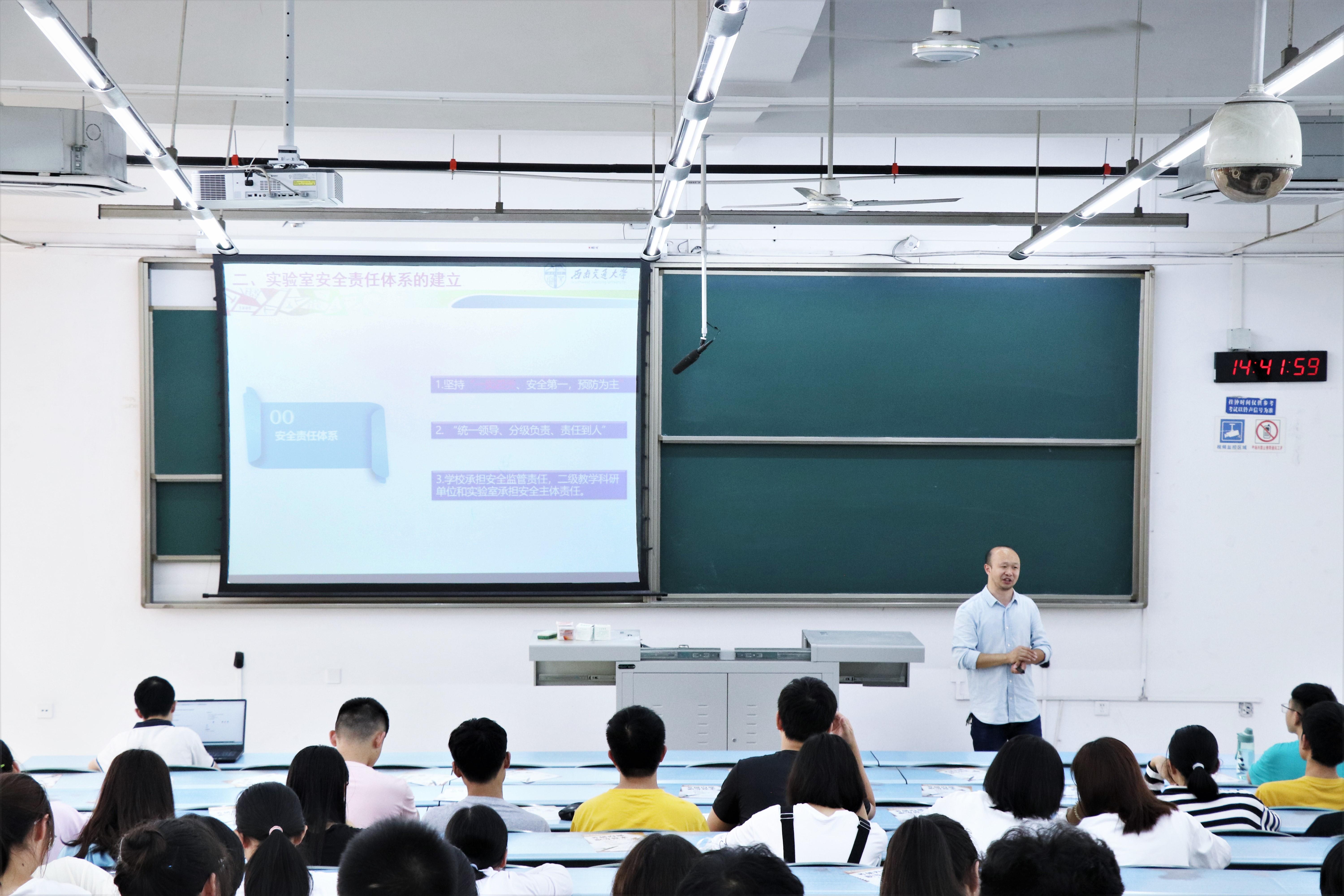 为了深入贯彻落实学校安全教育方针,提升学生安全意识,保障广大师生人身安全,保证实验、教学、科研工作的正常开展。9月23日下午2时30分,2138cc太阳集团2021级新生“走进数学实验室,从安全教育开始”实验室安全教育讲座于X2218教室顺利开展。本次讲座由实验室主任潘志刚主讲,2021级辅导员邱君捷到场,2138cc太阳集团2021级全体新生按时参加。