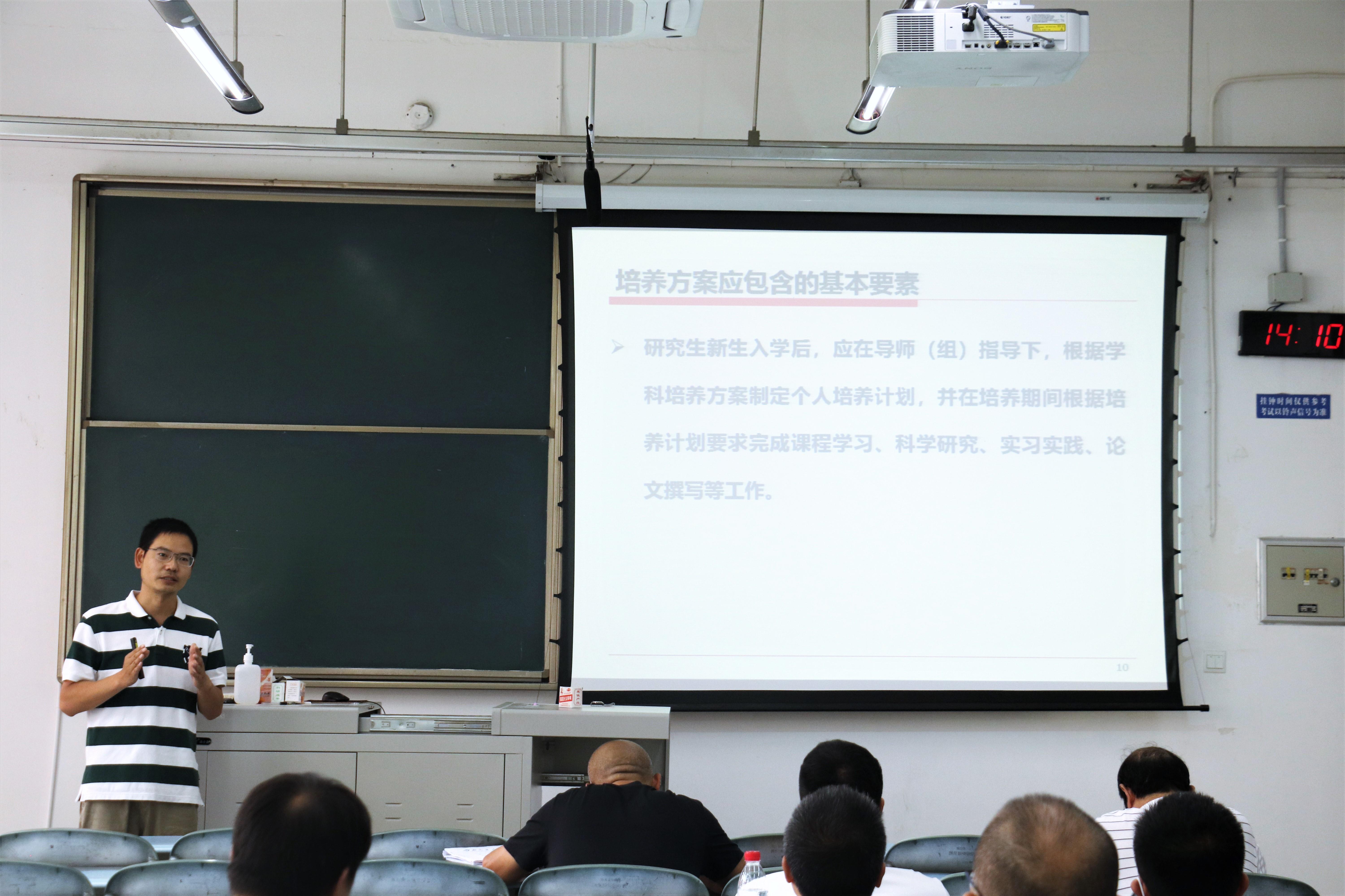 杨洋教授首先讲述了研究生培养方案管理办法的具体措施,以我校研究生的实际状况展开,对研究生日后发展的学科专业简介、培养目标、基本学习年限、课程学习要求等内容进行讨论。