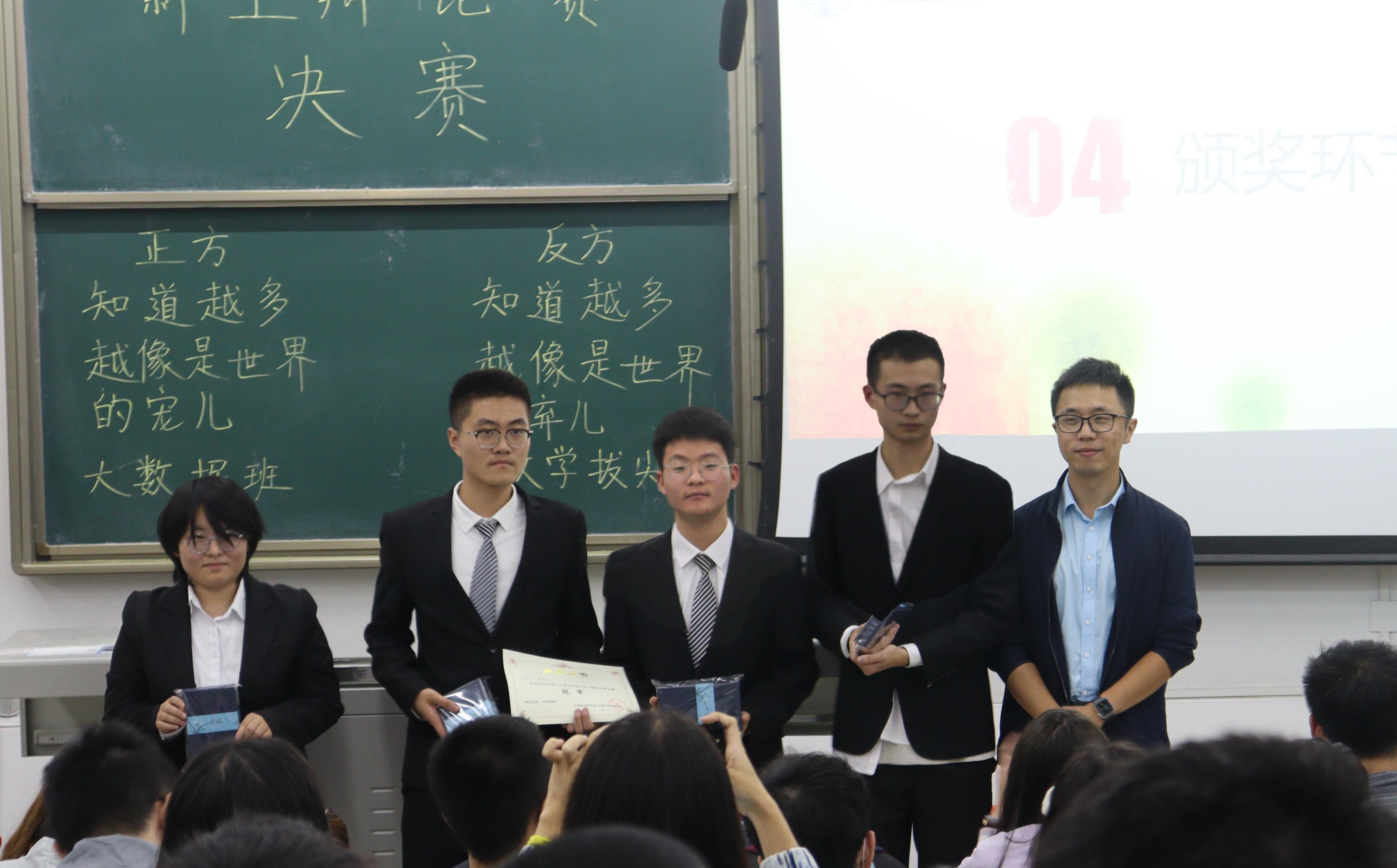 此次比赛的辩题为“知道越多越像是世界的宠儿/弃儿”。正方为大数据一班代表队的王泰桦、岳思毅、张哲、甄佳宇,反方为数学基地班代表队的马万里、张琮琪、朱纯雨、杨婧悦。