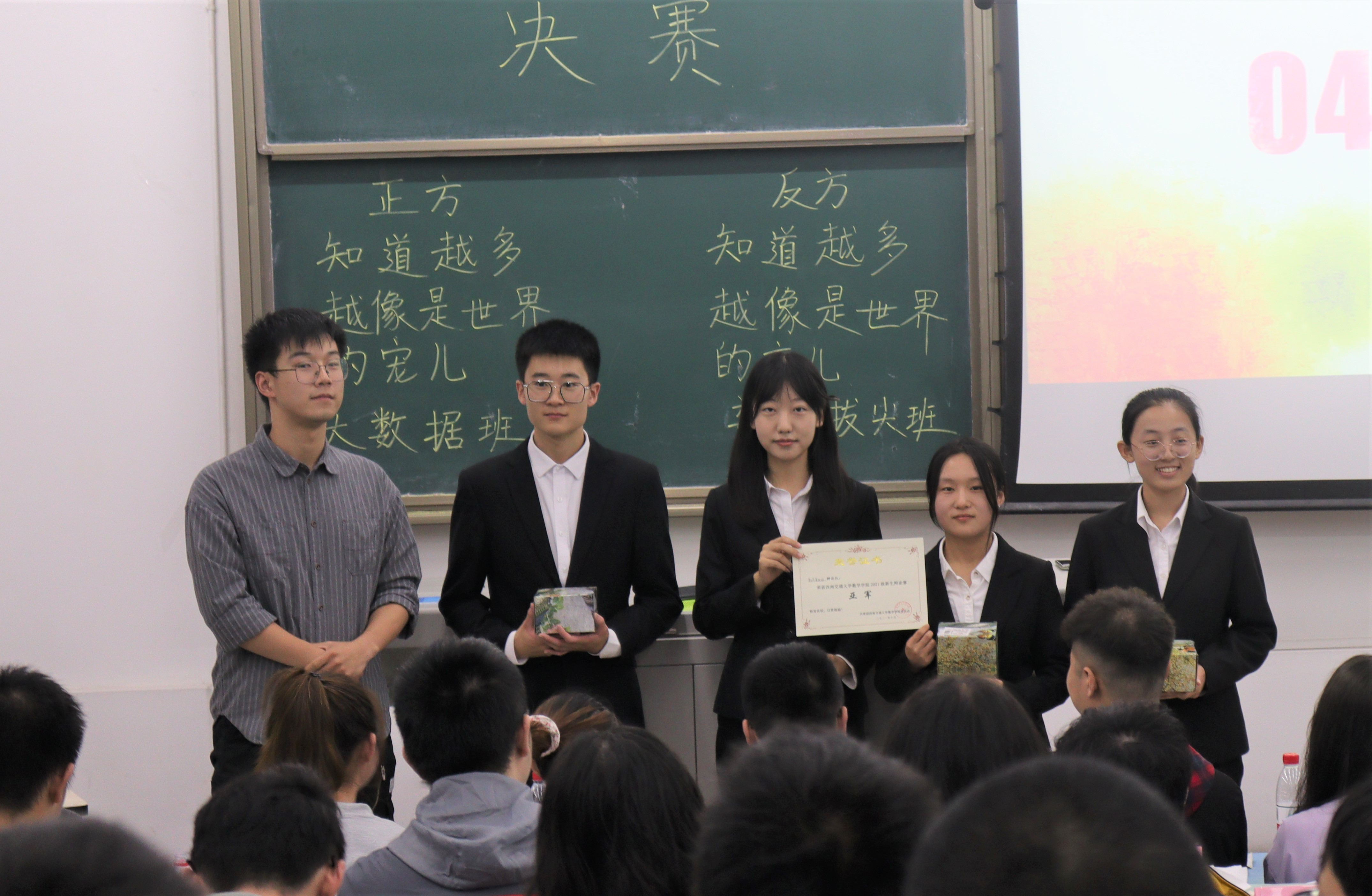最终,邱君捷老师公布比赛结果:正方大数据一班获胜,获得本次辩论赛冠军,数学基地班获得亚军,本场最佳辩手为反方二辩张琮琪同学。