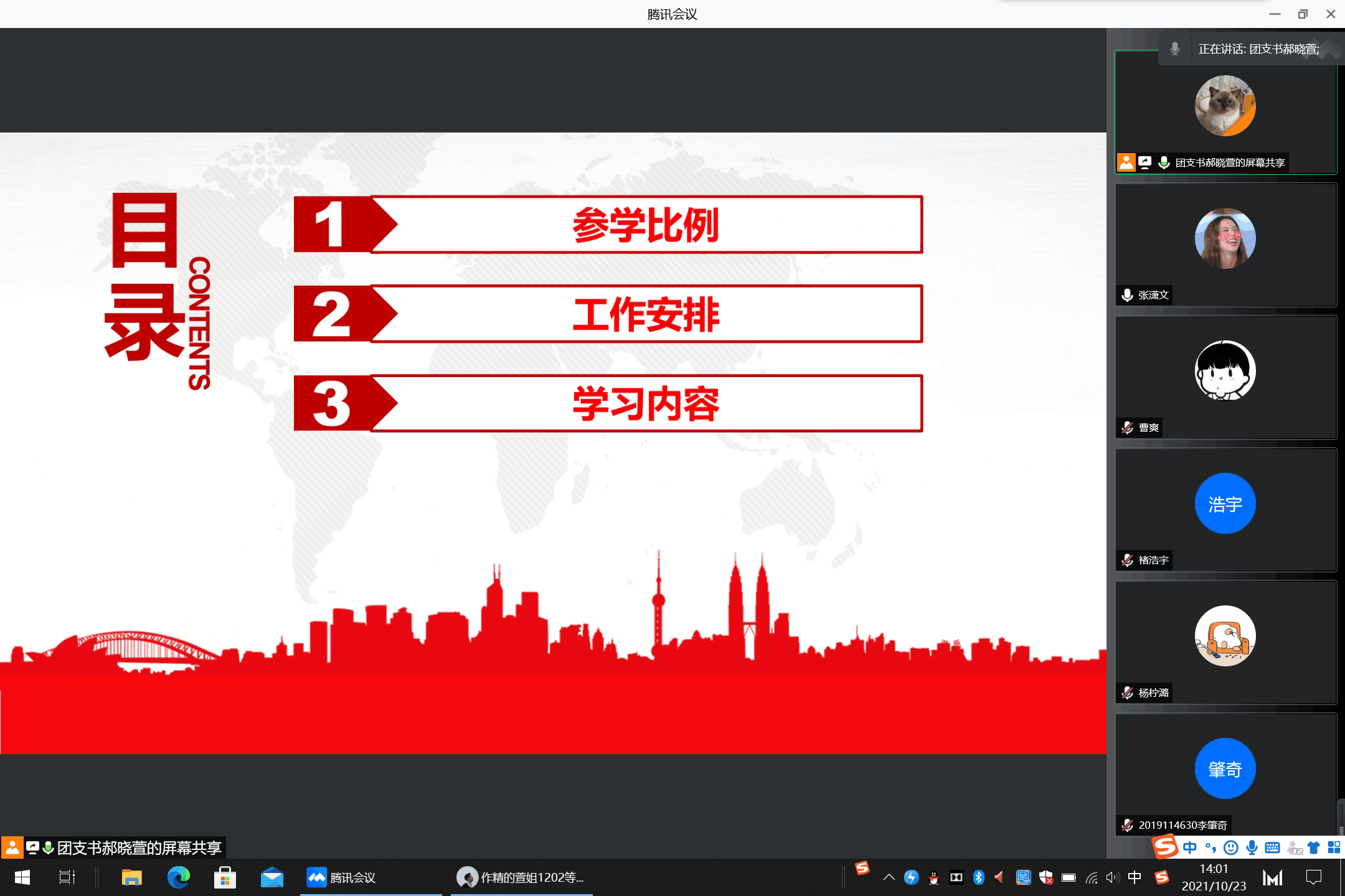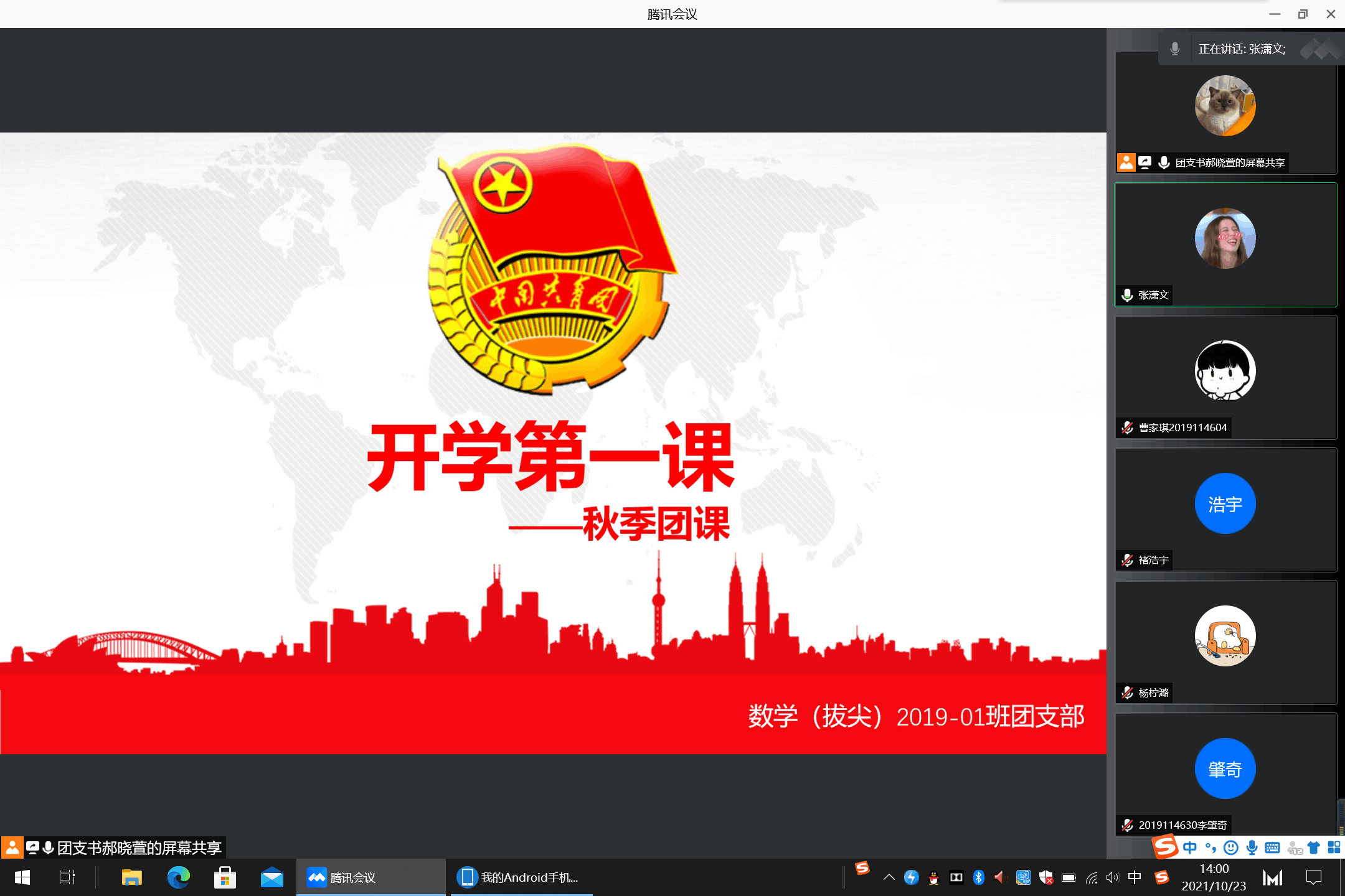 2021年10月23日下午2时,2138cc太阳集团数学(拔尖)2019-01班团支部秋季第一堂团课在线上顺利开展。本次团课应到团员10人,实到9人,其中一人因事缺席。由团支书郝晓萱主持召开。