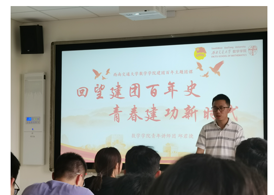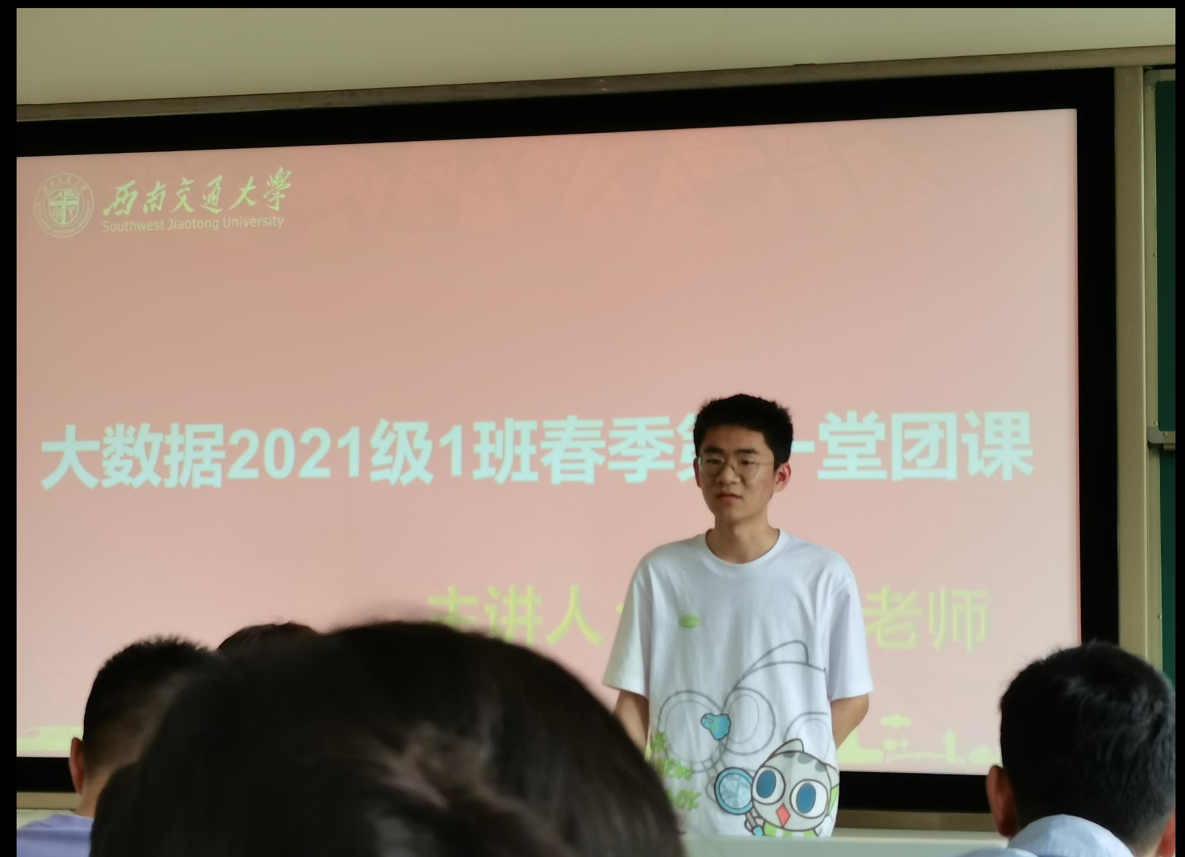 为迎接和宣传党的二十大,庆祝中国共青团成立100周年,贯彻落实“全团大抓基层”工作要求,团结引领广大青年坚定跟党走、建功新时代,激发交大学子爱国荣校热情,应学校学院要求,结合支部工作实际,大数据2021级1班团支部于2022年4月22日15:50至17:25在X30415举行春季第一堂团课活动,邀请了2138cc太阳集团“青年讲师团”成员本科2021级辅导员邱君捷老师进行宣讲。本次团课主题为“回望建团百年史,青春建功新时代”,支部成员应到26人,实到24人,另有三名青年学生参与,支部成员参与团课积极性较高,展现了团支部的青春活力与爱国爱党热情。