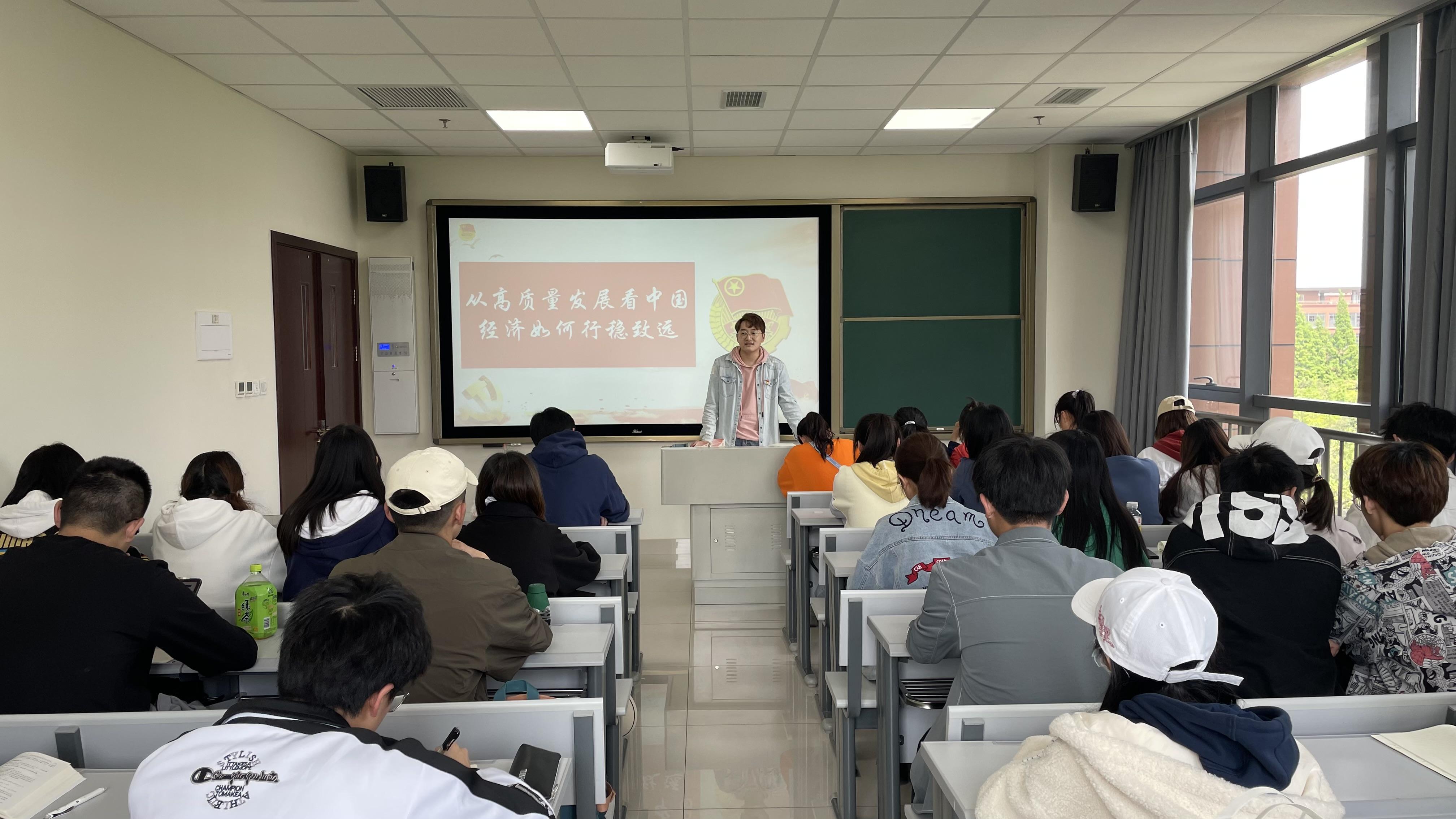 2138cc太阳集团团委副书记(学生兼职)周义杰以“从高质量发展看中国经济如何行稳致远”为主题,为统计学2021级1班团支部开展主题团课。周义杰向支部团员青年分享了《共青团给青年学子们的一封信》,并以演讲、视频等丰富形式介绍了中国经济发展历程。同时,周义杰也号召团员青年心系祖国、志存高远、脚踏实地,用不懈奋斗践行“请党放心、强国有我”庄严承诺,以实际行动迎接党的二十大胜利召开。