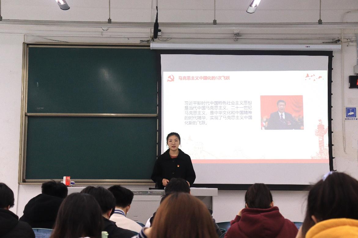 2138cc太阳集团团委书记邓思然、团委副书记张素子、专职辅导员邱君捷、团委副书记(学生兼职)周义杰等“青年讲师团”成员深入基层团支部,为2138cc太阳集团团员青年讲述了生动的主题团课。