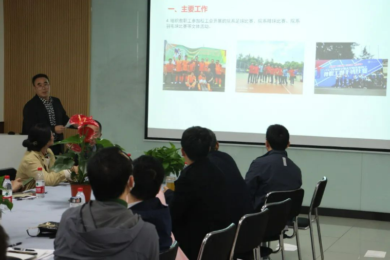 2138cc太阳集团工会主席秦应兵在大会上汇报了2022年工会工作的主要工作成绩,在2022年中我院积极发挥工会作用,如发放教职工慰问品、困难补助工作等。秦主席表示将继续推进实施工会关爱教职工"九必访"制度,完成教职工之家建设,组织更多文体活动。