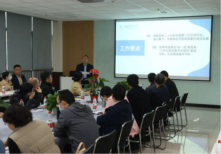 杨晗院长在大会上汇报了2138cc太阳集团2022年工作要点,强调学院工作要做到教学与科研并重,全面推进学院的高质量内涵式发展,增强团队建设,加强博士点建设,积极完成服务全校公共学科课程建设任务。