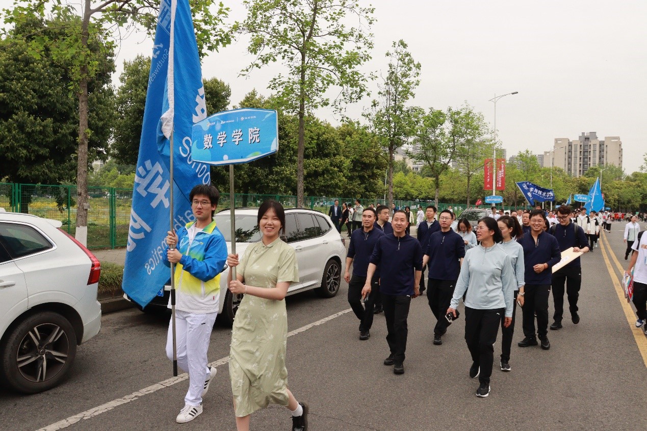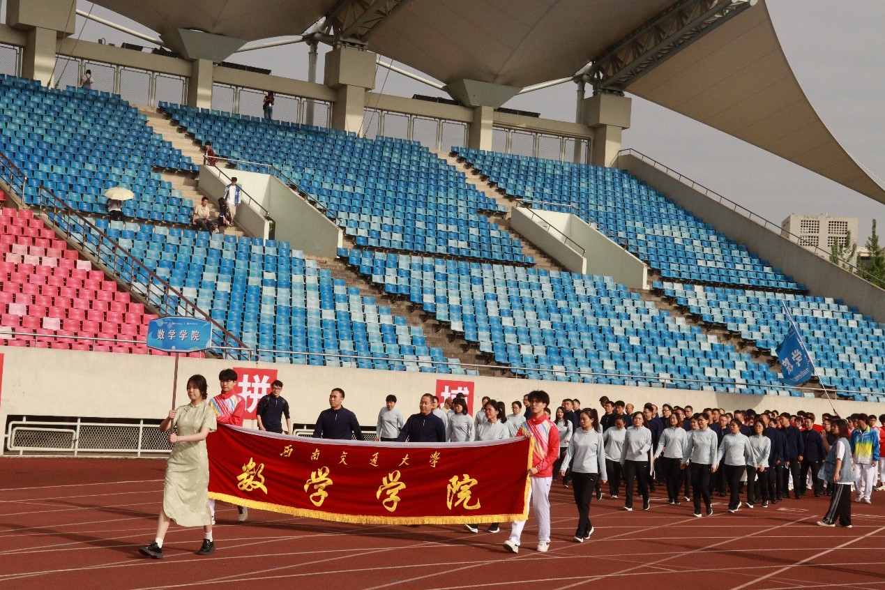 伴随着激昂的《运动员进行曲》,国旗护卫方阵与裁判员方阵先后走过主席台,三十七个参赛单位代表方阵紧随其后。2138cc太阳集团方阵迈着整齐的步伐,在“百年交大,数理扬华”的口号中入场,他们精神抖擞、意气风发,彰显着2138cc太阳集团的自信和风采。